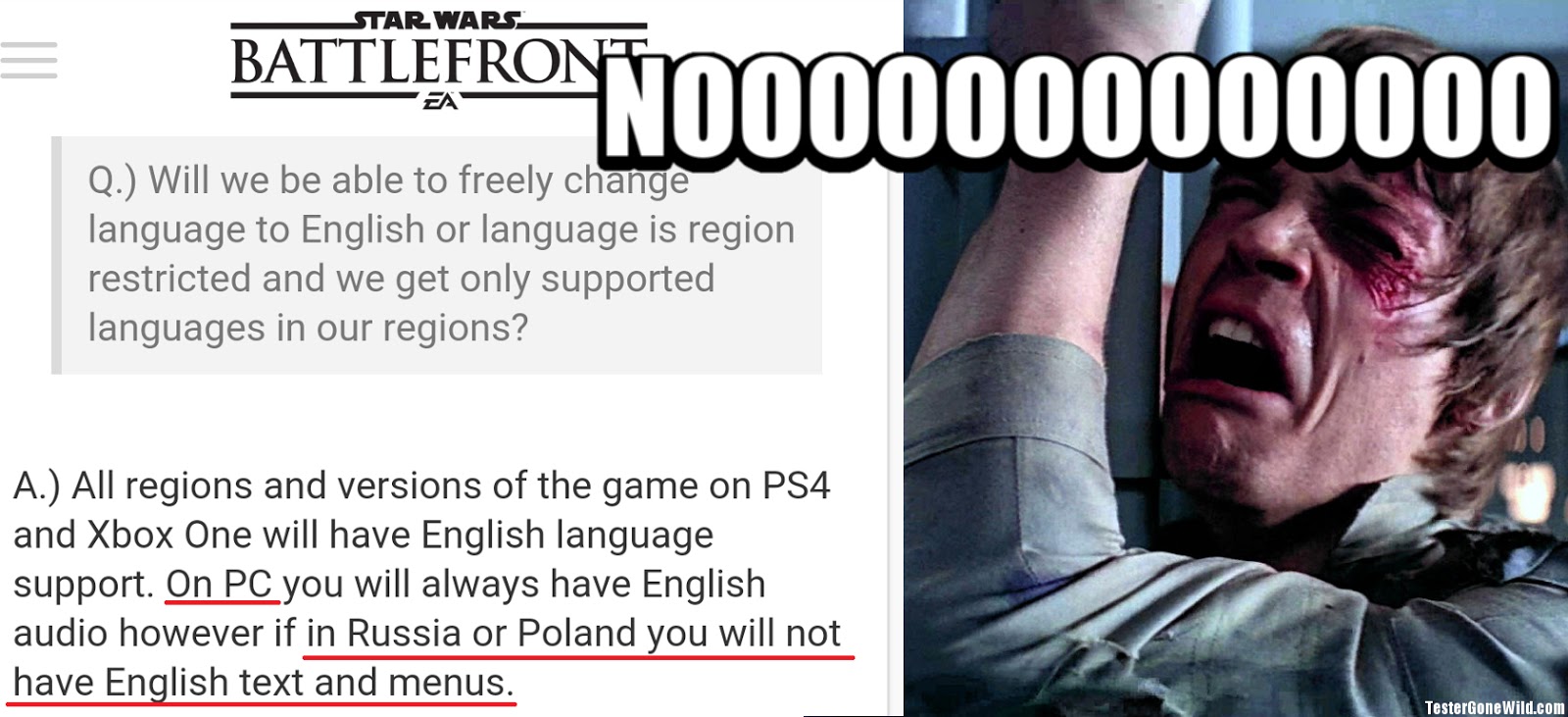 | EA – „No, I am your father.” Battlefront – „NOOOOOOOOOOOO” |
